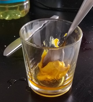 Mix a spoonful of mustard and a spoonful of honey in a glass to create a glaze. Spread this onto the fat on the ham.- Peel the onion, and roughly chop it and the carrot into pieces about an inch wide. Don't worry too much about making them nice.